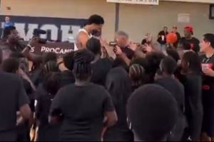 塔图姆在家乡主持篮球训练营&大受小朋友喜爱 他还穿着保护靴